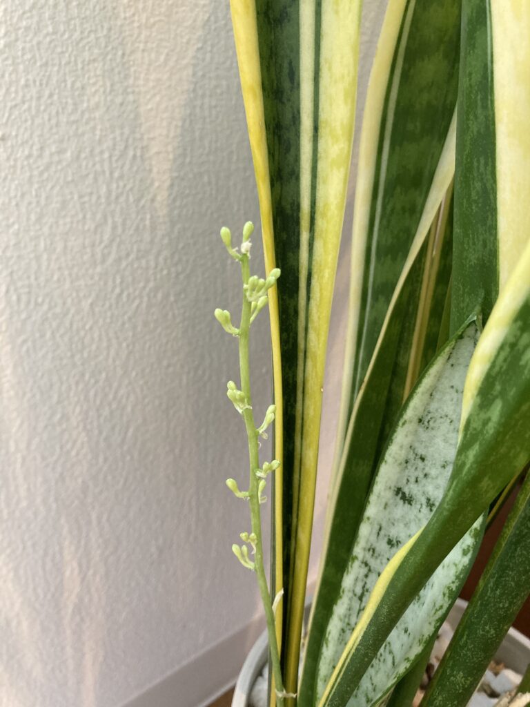 去年4月、“カポック”という観葉植物に花が咲いたのをブログに載せたのですが、“サンセベリア”という観葉植物にも花の蕾がついてきました!