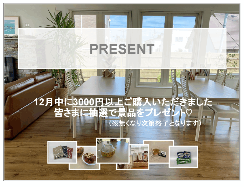 BLOG 公式ブログ 2025.11.28 NEW お知らせ プレゼント企画 こんにちは。 ミドリ薬品漢方堂 店長の阿部です。 いつもご来店いただきましてありがとうございます。 今年も一年間、ご購入いただきましたお客様に感謝を込めまして、ささやかではございますが 「プレゼント企画」 を実施することになりました。 漢方堂店、パラボ店で、12月中に3000円以上(一会計につき)ご購入いただいた方に、抽選で景品が当たります。 商品が無くなり次第終了となりますので、皆様のご来店を心よりお待ちしております。 写真以外の景品も沢山用意していますよ^^ Tweet シェアする 次の記事 記事一覧